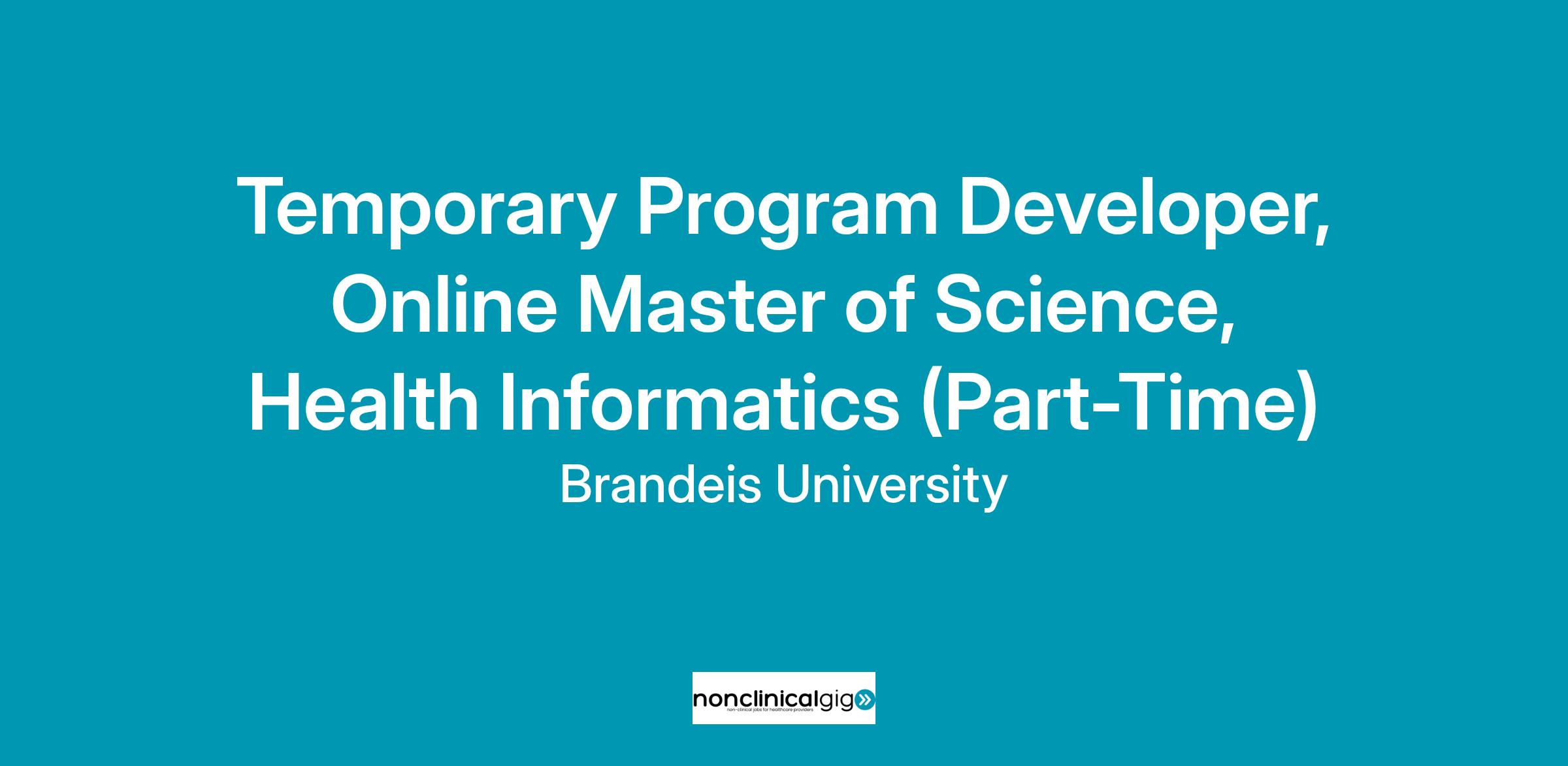 Brandeis University’s Rabb School of Continuing and Professional Studies is seeking a Part-Time Program Developer to lead the creation and submission of a comprehensive proposal for an Online Master of Science in Health Informatics. This role is central to designing a graduate program that prepares professionals to harness data, technology, and clinical insights to improve healthcare delivery, patient outcomes, and system efficiency.