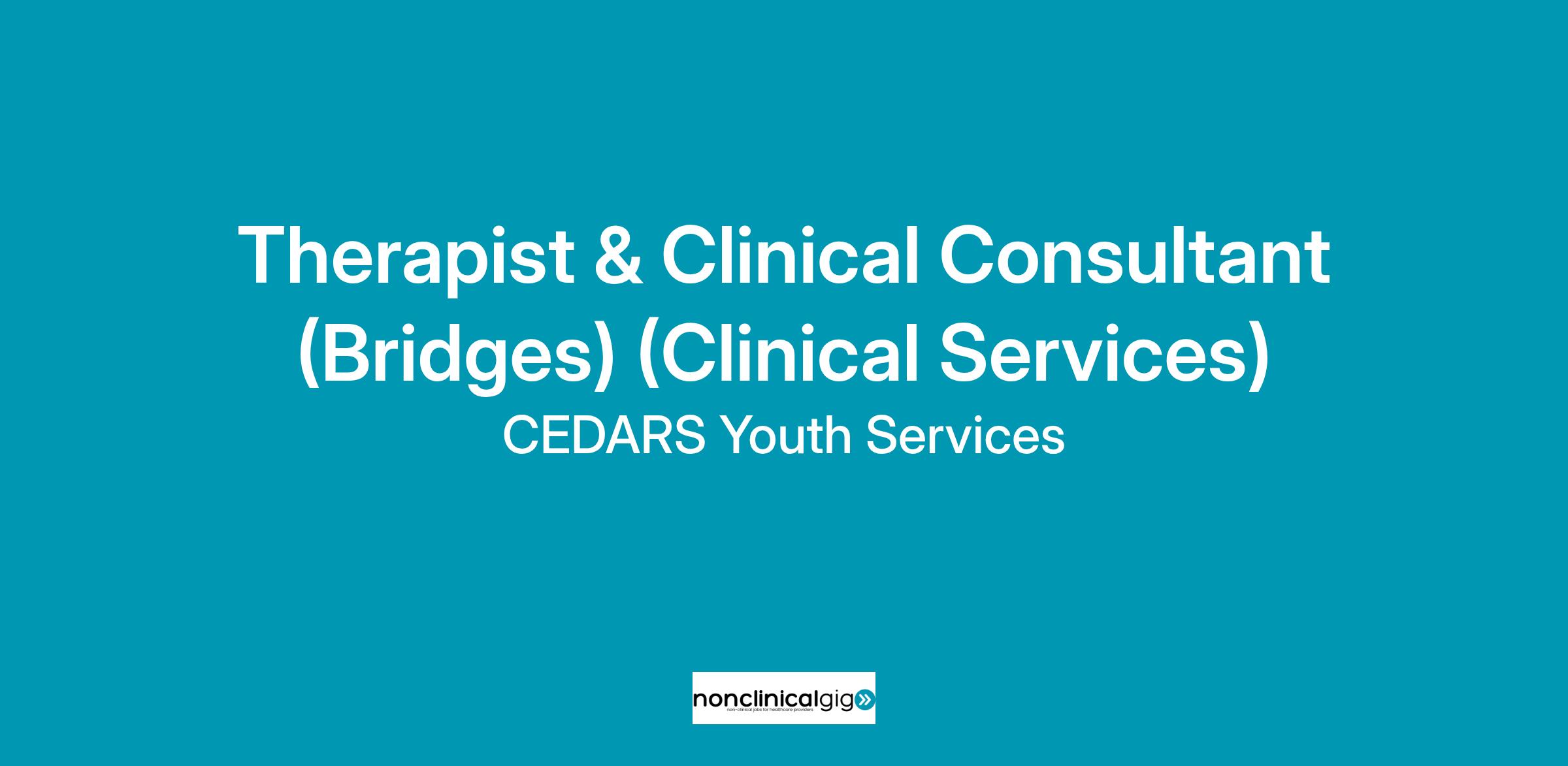 The Therapist/Clinical Consultant shall support identified CEDARS programs ineffectively meeting the mental and behavioral health needs of the clients served. They shall function as an effective member of the interdisciplinary care team.