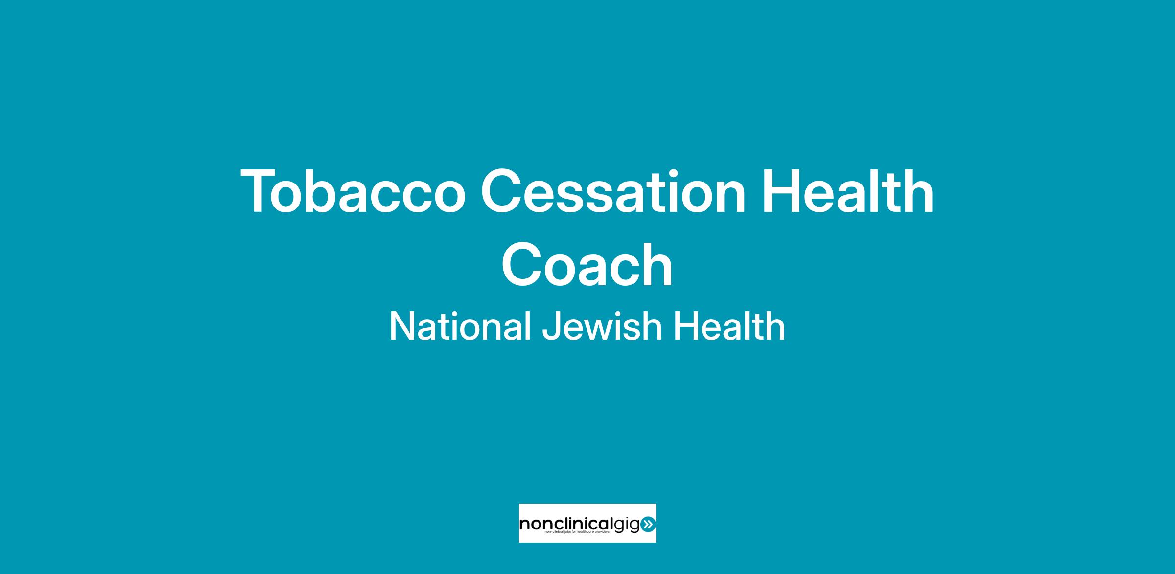 National Jewish Health is seeking Tobacco Cessation Health Coaches to join our team. We have a passion for helping people be successful in their journey to quit tobacco. Our tobacco cessation program is based on proven strategies that have helped more than 1.5 million people nationwide quit tobacco.