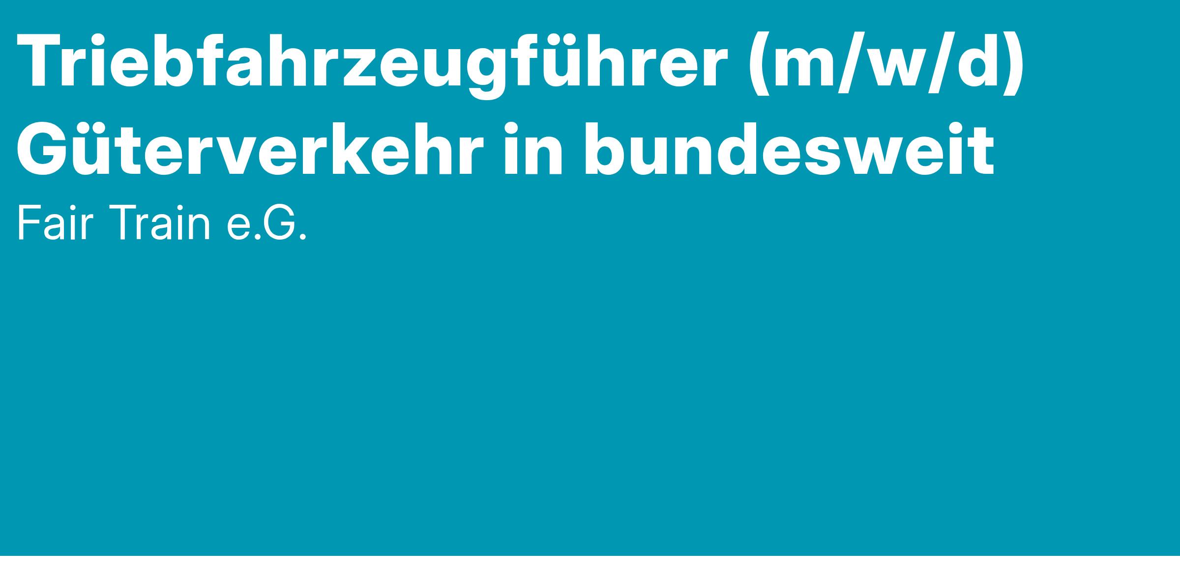 Fair Train e.G., die junge Genossenschaft der Lokomotivführer wächst weiter! Wir suchen daher baldmöglichst im gesamten Bundesgebiet Triebfahrzeugführer (m/w/d) für den Güterverkehr zur Überlassung an unsere Kunden in Deutschland.