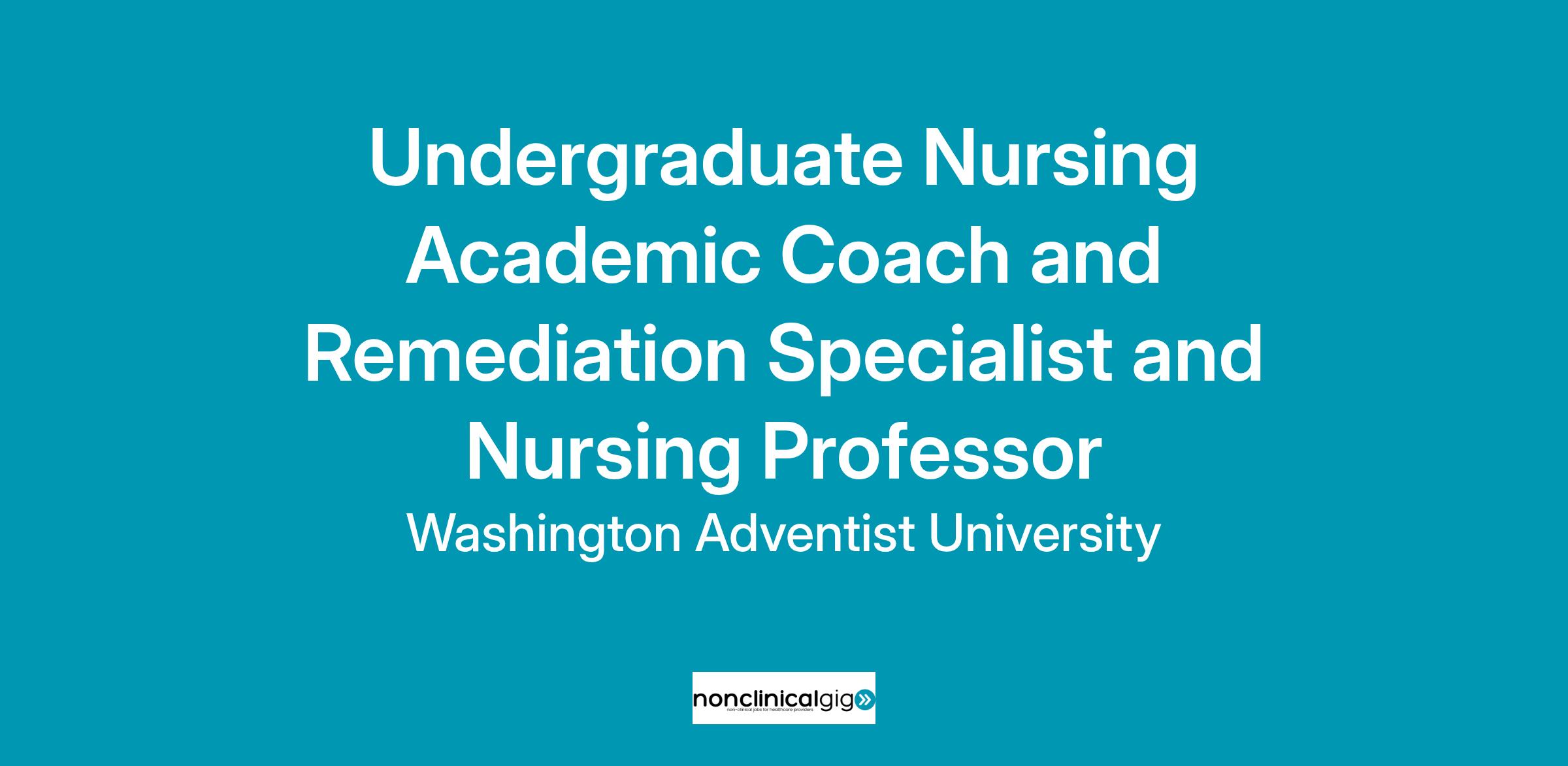 Job Title: Undergraduate Nursing Academic Coach and Remediation Specialist and Nursing Professor