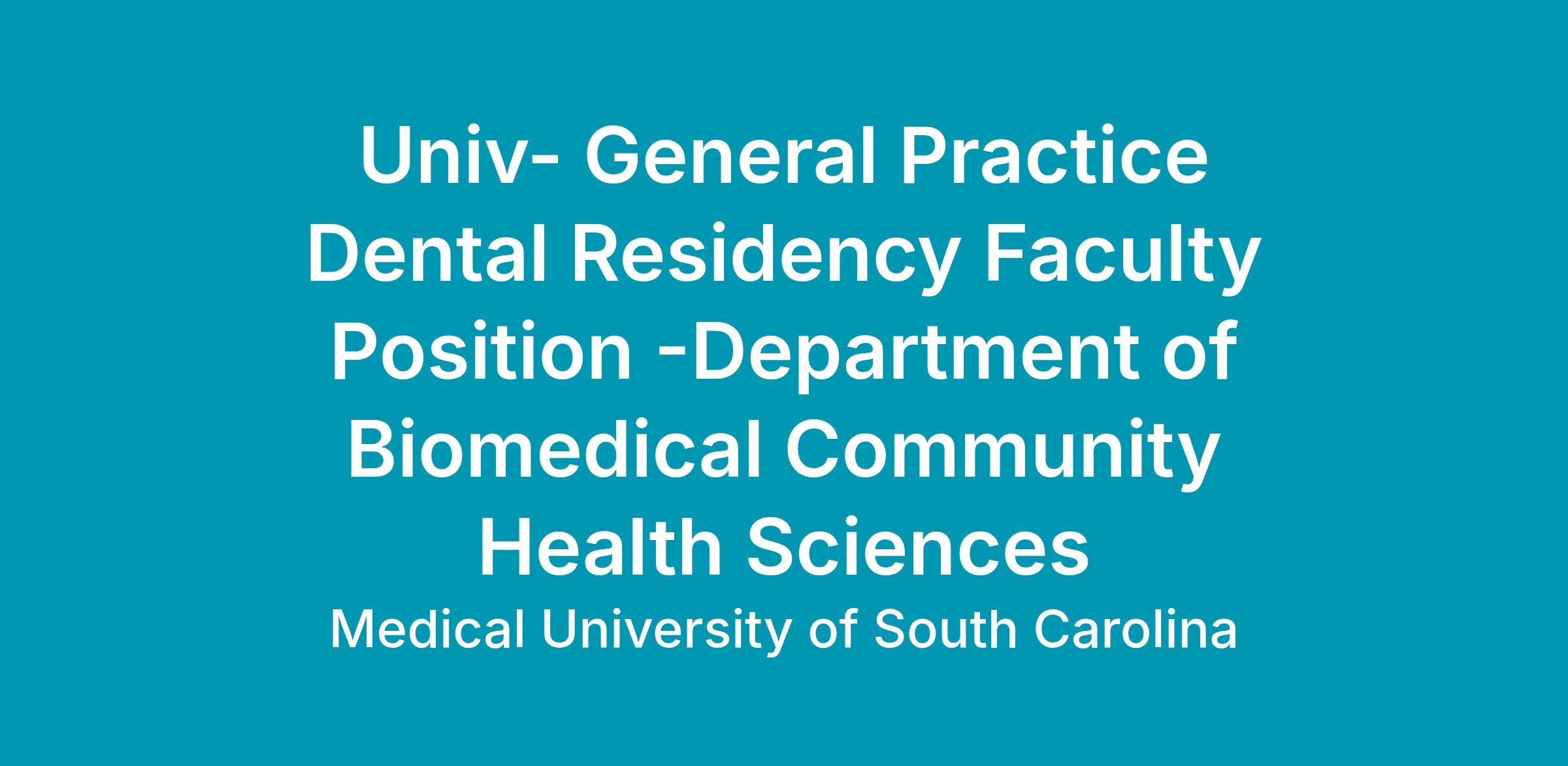The James B. Edwards College of Dental Medicine (JBECDM) is pleased to announce the recruitment of a full-time dental faculty for a new Rural General Practice Residency Program (GPR-P) in the Pee Dee region of South Carolina.Entity