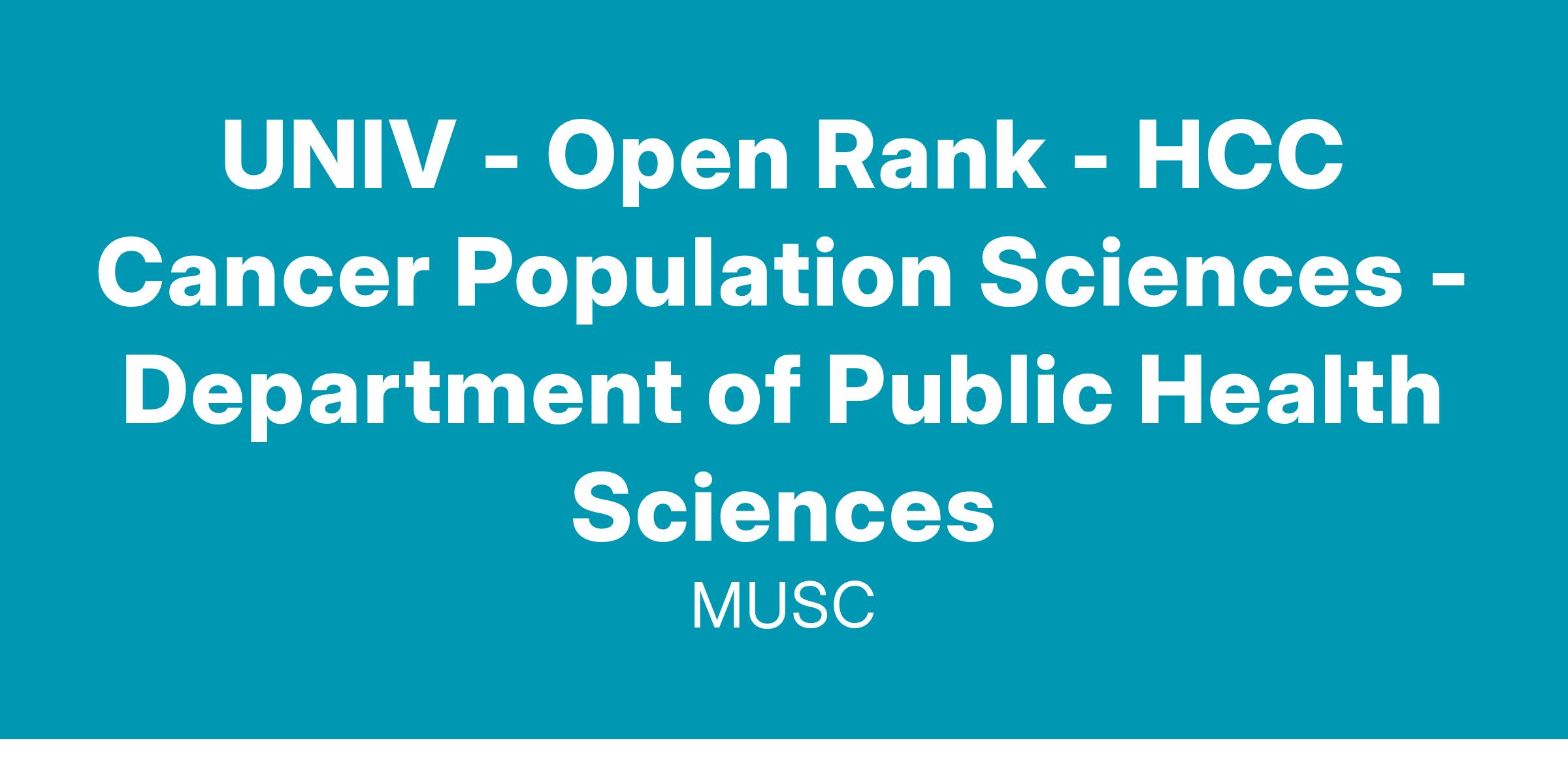 The Department of Public Health Sciences (DPHS) and Hollings Cancer Center (HCC) seek an outstanding cancer population scientist to serve as a member of our faculty and help advance cancer prevention and population sciences research. Qualified applicants will be considered for a tenure track Assistant Professor position.Entity