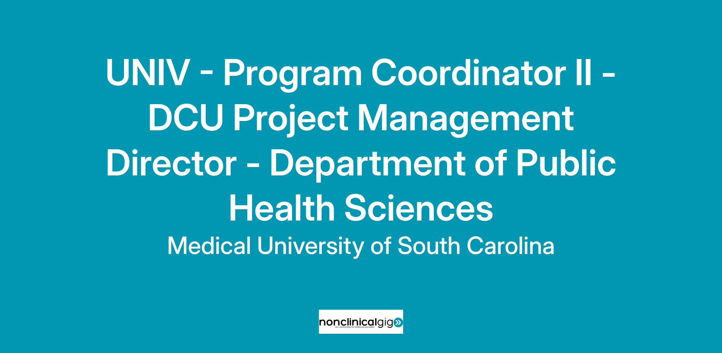 The Program Coordinator II will serve as the Project Management Director for assigned DCU studies.Entity