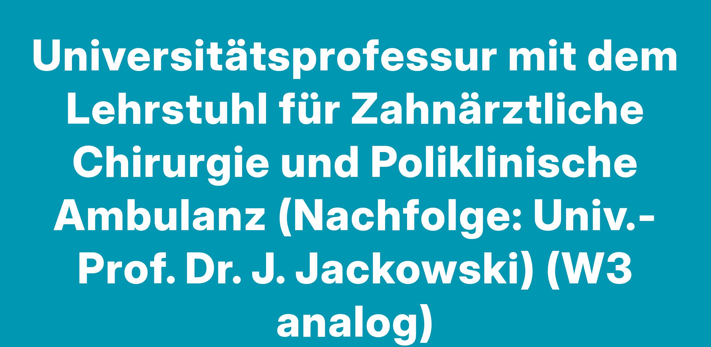 Einstellungsvoraussetzung ist die Habilitation oder eine gleichwertige wissenschaftliche Leistung nach einem abgeschlossenen Studium der Zahn-, Mund- und Kieferheilkunde.