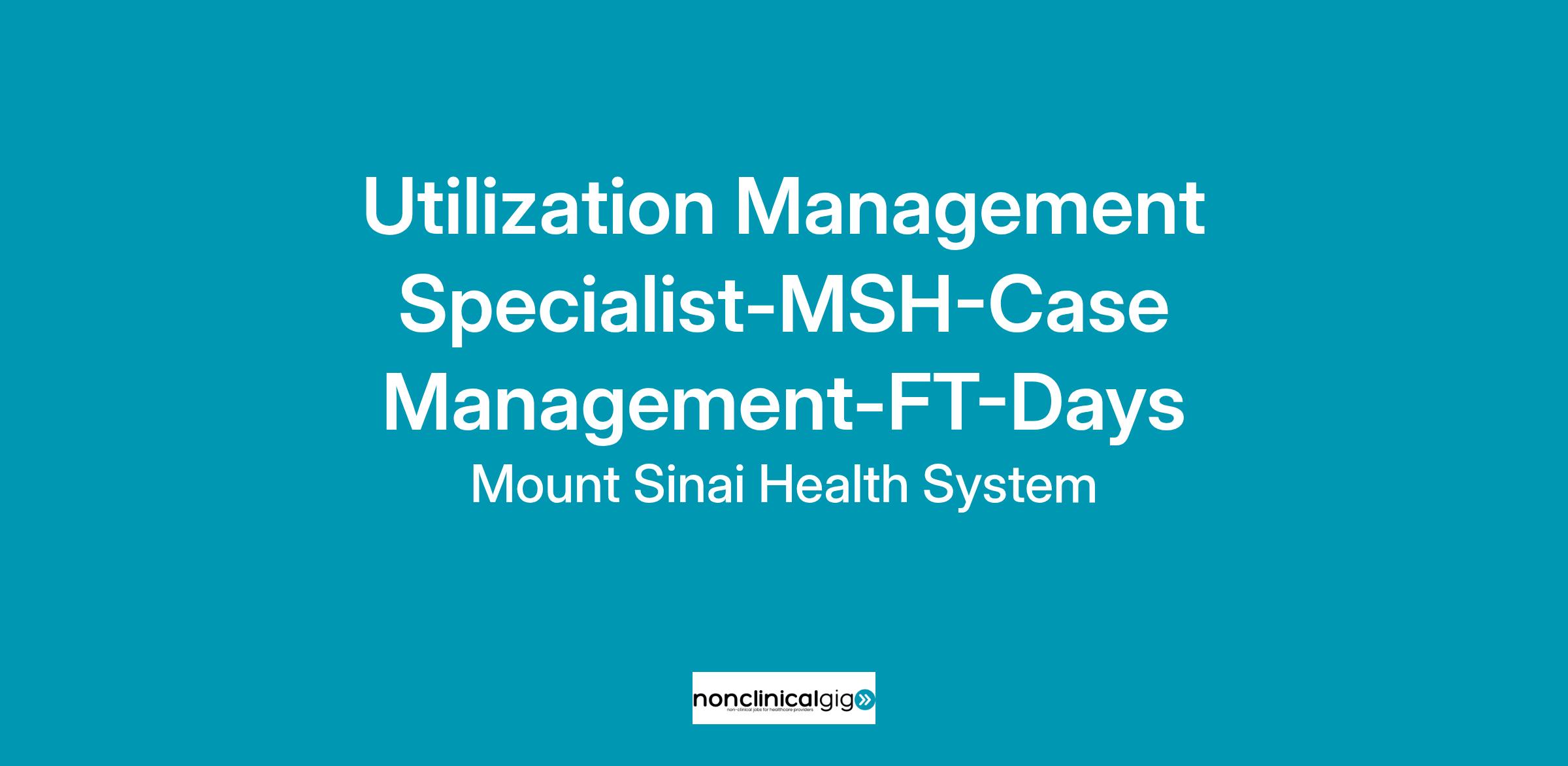 DescriptionUtilization Management Specialist MSH Case Management FT Days