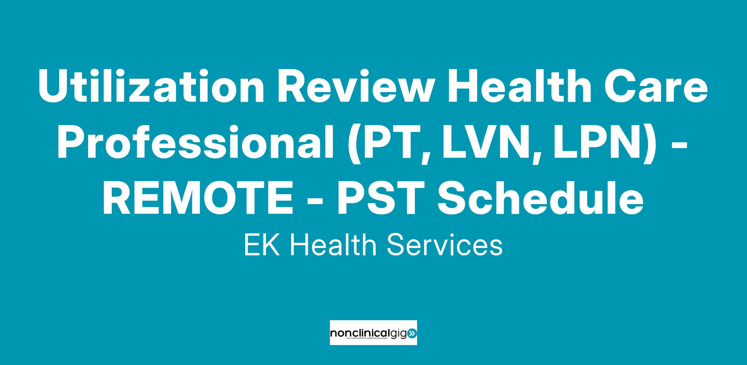 Do you have a passion for healthcare, but prefer to use your clinical skills in a non-clinical setting? Do you enjoy piecing together and analyzing information? Do you enjoy engaging in computer-based tasks, and navigating between multiple screens? Then consider a position as a Utilization Review Healthcare Professional with EK Health! As an Health Care Professional, you will play a critical role in assessing the medical necessity and appropriateness of healthcare services, ensuring the efficient utilization of resources, and optimizing patient outcomes. If you have a background in healthcare, exceptional analytical skills, and a passion for improving healthcare delivery, we invite you to apply for this rewarding position!