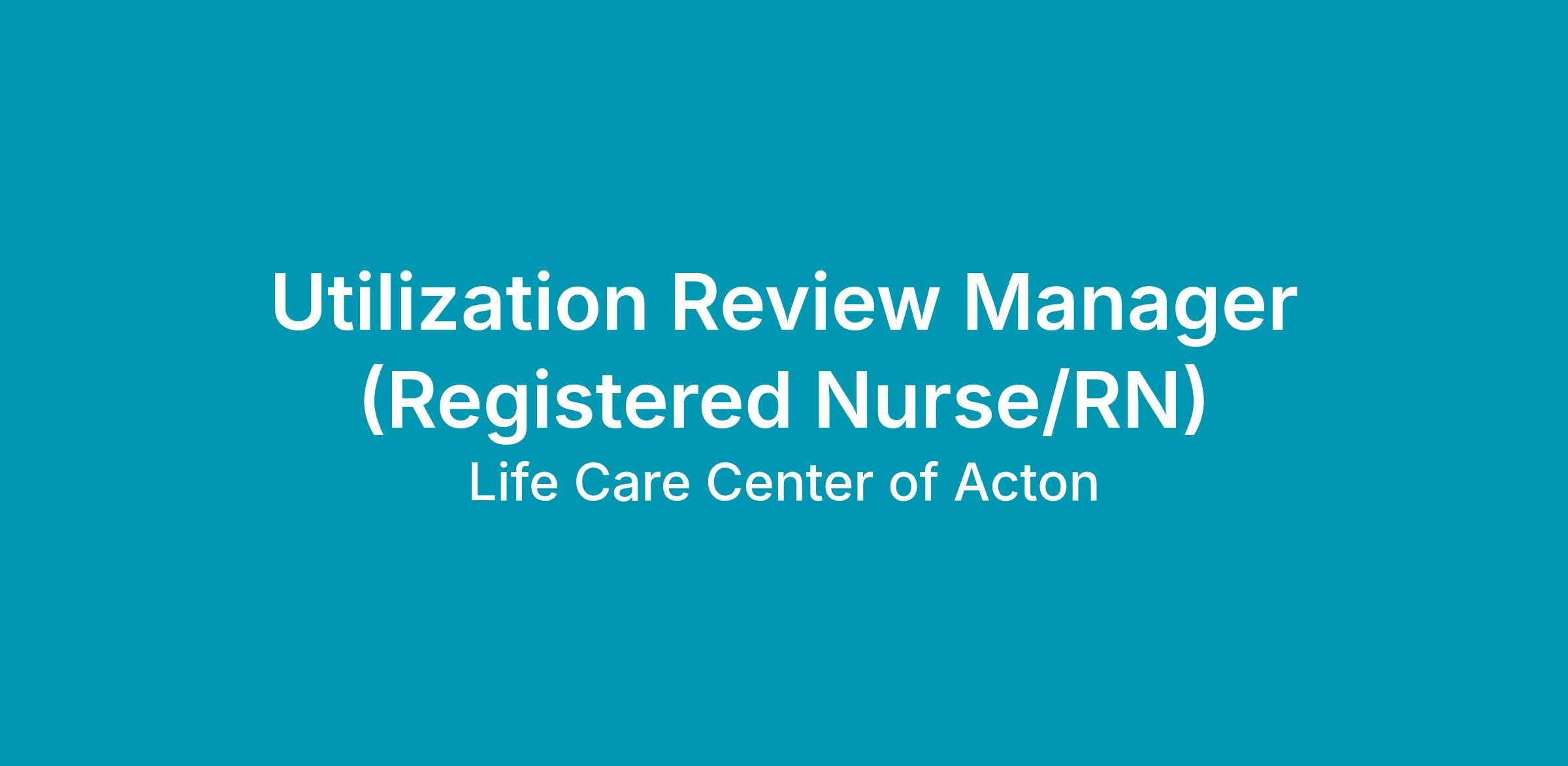 The RN Utilization Review Manager is responsible for the coordination of the patient's care and services and manages the