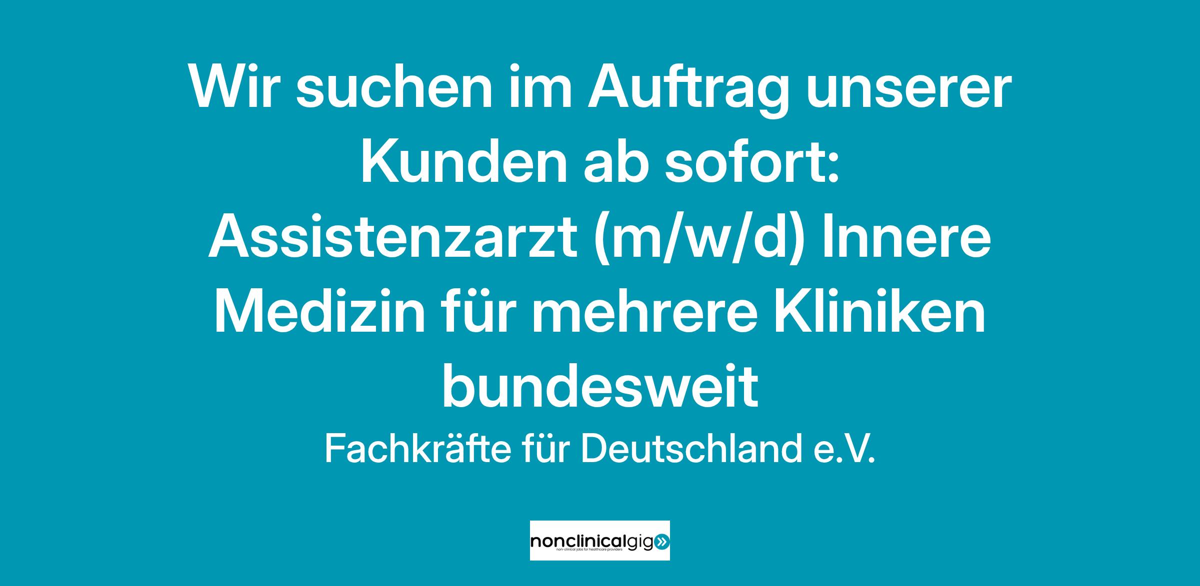 Wir suchen im Auftrag unserer Kunden ab sofort: Assistenzarzt (m/w/d) Innere Medizin für mehrere Kliniken bundesweit